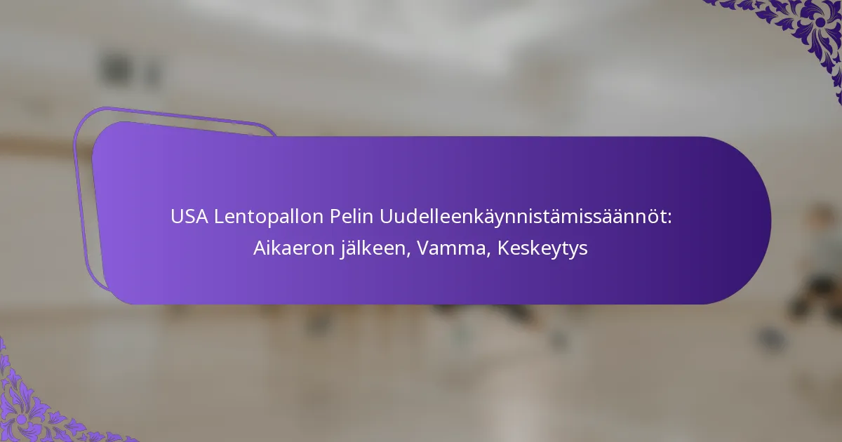 USA:n lentopallossa pelillä on erityiset uudelleenkäynnistyssäännöt aikakatkosten, vammojen tai keskeytysten jälkeen, jotta oikeudenmukaisuus ja selkeys säilyvät. Joukkueiden on noudatettava vakiintuneita protokollia, mukaan lukien tuomarin ilmoittaminen ja valmius syöttää määräajassa. Nämä ohjeet varmistavat pelaajien turvallisuuden ja pelin sujuvan jatkumisen. Key sections in the article: Toggle Mitkä ovat USAn lentopallon pelin uudelleenkäynnistyssäännöt aikakatkon jälkeen? Aikakatkon määritelmä lentopallossa… Read More »