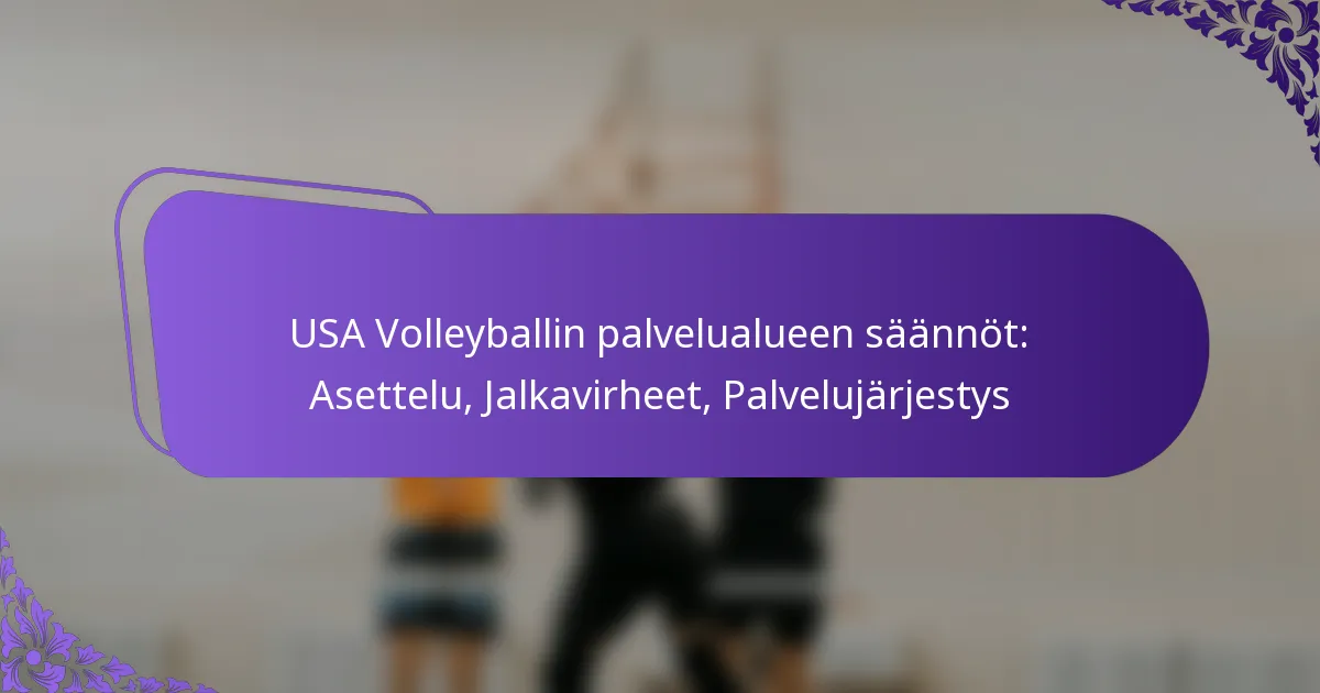 USA Volleyballin syöttöalueen säännöt määrittelevät pelaajien sijoittumiseen liittyvät vaatimukset syöttäessä palloa, varmistaen reilun pelin ja johdonmukaisuuden otteluissa. Näiden sääntöjen noudattaminen on olennaista, sillä väärä jalkojen sijoittaminen voi johtaa jalkavirheisiin, jotka tapahtuvat, kun pelaaja astuu tai ylittää määrätyt viivat ennen syöttämistä. Näiden sääntöjen ymmärtäminen auttaa pelaajia maksimoimaan syöttötehokkuutensa ja minimoimaan virheitä. Key sections in the article:… Read More »