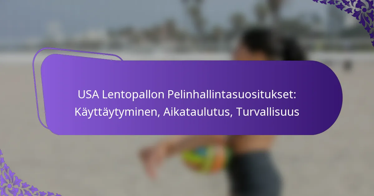 USA Lentopallon Pelinhallintasuositukset: Käyttäytyminen, Aikataulutus, Turvallisuus